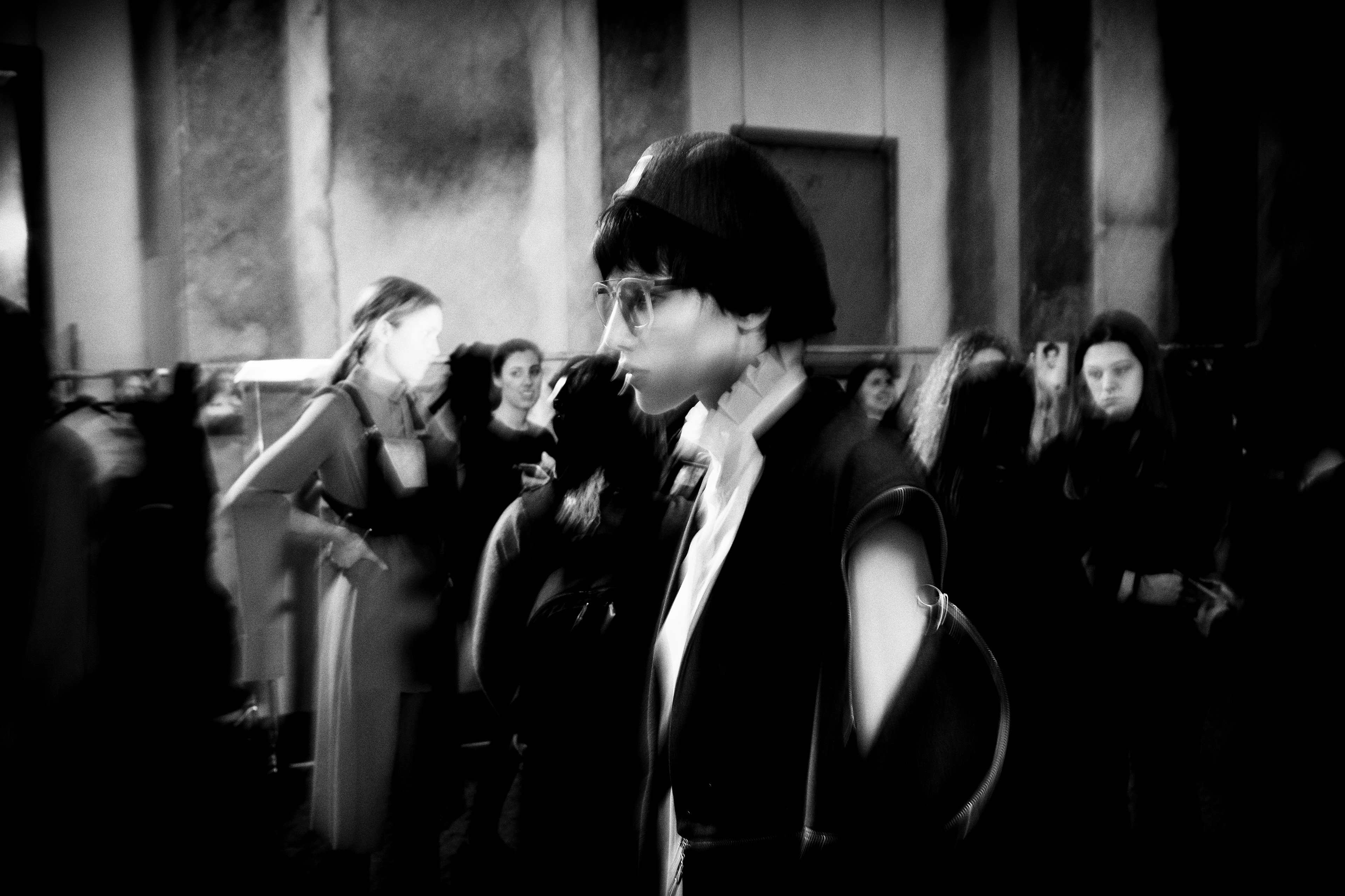 In the fashion week at 1/30 sec. or less shutter speed. Following the subject.